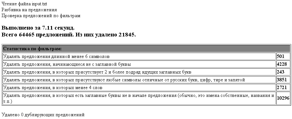 После работы скрипта в результирующем файле будут сохранены только чистые предложения (в зависимости от выбранных фильтров).