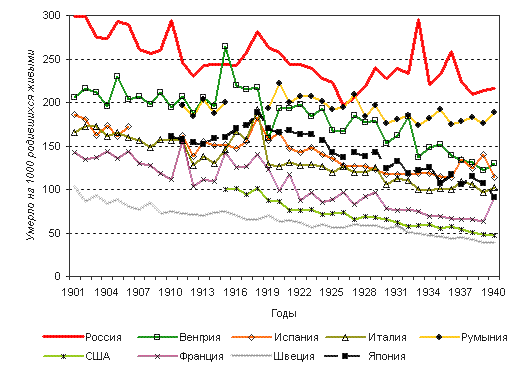 За последние 100 лет младенческая смертность в России снизилась в 30 раз.