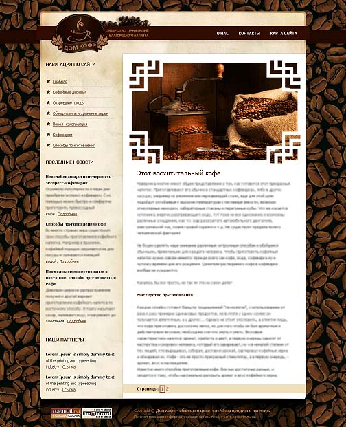 Дизайн: Адаптированный темплейт. Фиксированная верстка 776px. в основном на DIVах. Кроссбраузерность и высокая валидность кода.