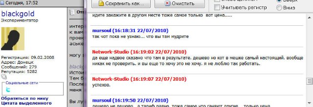 Не адекват обыкновенный. ВАм отказали в прогоне. А вы тут изливаете... а меня в аське не хорошими словами.... Можете всю переписку приложить для полноты картины. Пусть народ посмеется над вами.