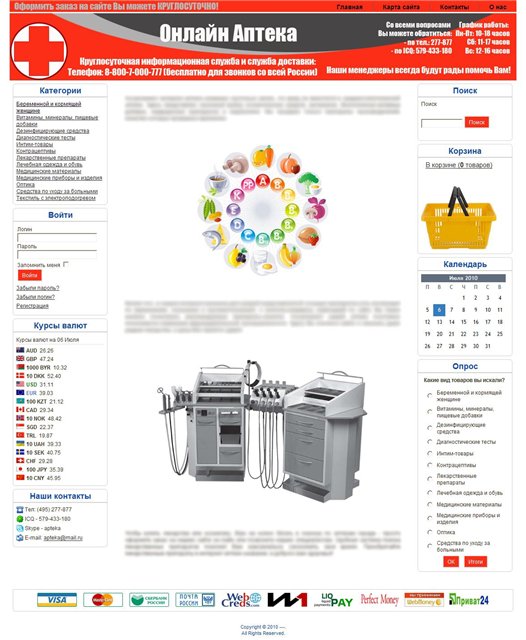 Установлены разные модули карусель товаров, поиск, карта сайта и тд.