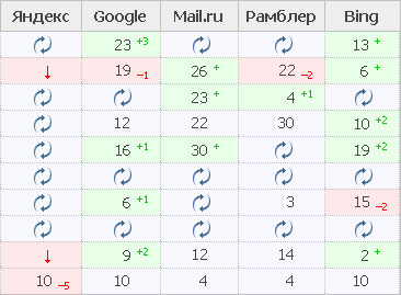 Вот следилка за позициями с ашмановского seorate.ru на сегодня.