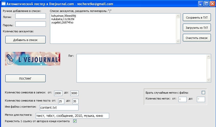 LiveJournal (ЖЖ) автопостер – бесплатная программа для постинга в ЖЖ: