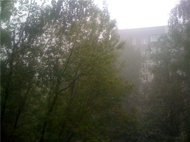 Не хуже чем вчера видимость. Силуэт дома полностью пропадает из зоны видимости примерно в 500м.