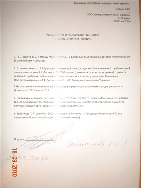 2) 18 сентября - наверное понимая банальность ситуации, делается попытка отжать домены у Регистратора, пишется заявление (выложил выше) - где признает факт сделки, но жалуется, дескать лавешку не получил. Тоже прокол.