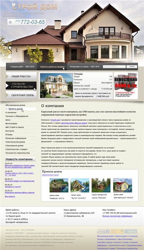Сайт №1 - Псевдо-сайт Строительной компании (Проектирование, Строительство коттеджей)