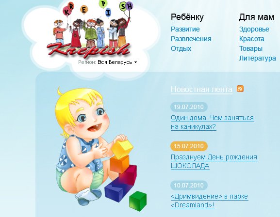Ребята, если кто не увидел, повторяюсь: у проекта есть персонаж!!! Крепышь — это тот ребёночек, который присутствует на том кусочке макета, что я вам дал. Вселять образ крепыша во что-то другое — идея не очень :(