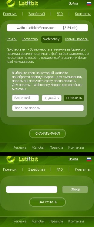 "Ваша ссылка на скачивание файла" и "Секретная ссылка на удаления файла"