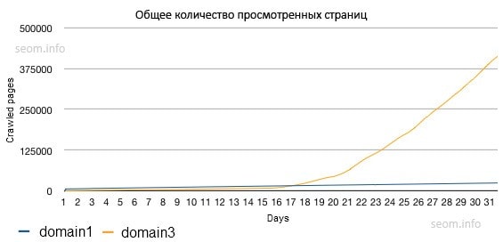 После того, как была загружена карта сайта скорость увеличилась до 500 в час. Через несколько дней, скорость увеличилась до 2224 страниц в час. Средний рост скорости просмотра страниц сайта поисковиком составил 4630.27%.