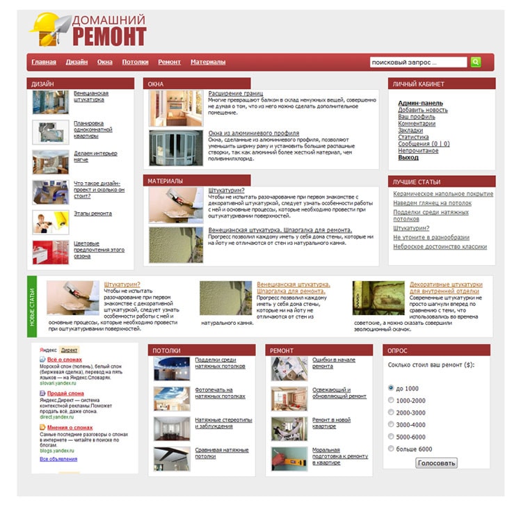 Выставляю на продажу сайт "Домашний ремонт и строительство"