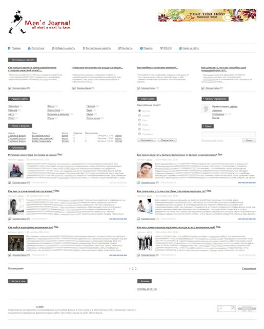 Разделы: Спорт, Карьера, Авто, Лицо и тело, Мужчины и девушки, Стиль, Здоровье, Люди, Семья, Стиль жизни + форум(настрою по желанию).