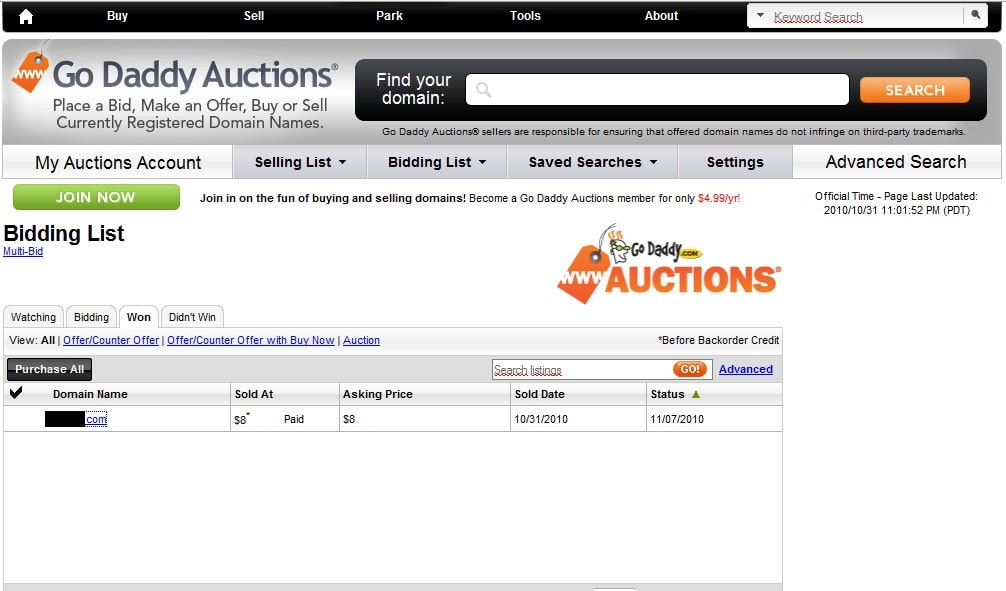вы выиграли домен на аукционе, домен оплачен, после 7 ноября он у вас в панели появится