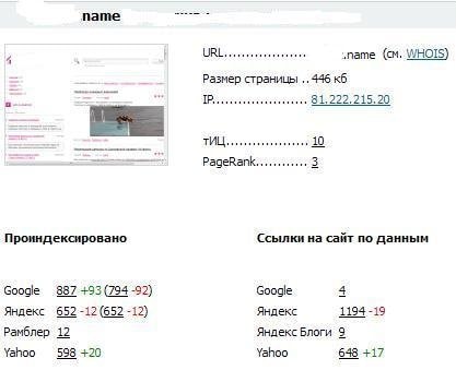 Параметры сайта: