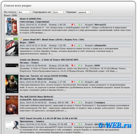 Список всех раздач на сайте