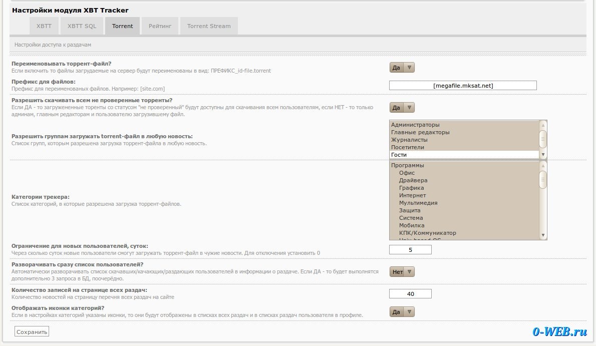 - выбор групп которым можно загружать раздачу через полную новость. Если пользователь находится в разрешенной группе, то он может добавлять раздачу в любую из выбранных для трекера категорий.
