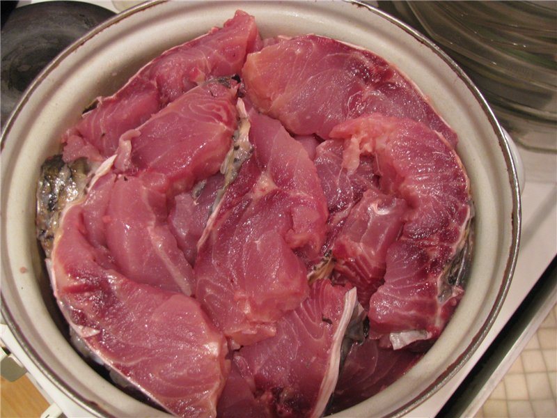 Кстати, если кому интересно, покажу 4,5 килограммы стейков (сырых). Всякие бока, спинки, брюшки и тем паче екро не покажу (во избежании стрессов), а стейки вот какие: