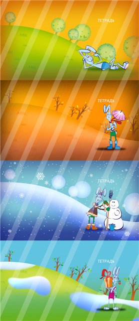 Хочу предложить на этот раз в честь предстоящего Нового Года (год кролика) приобрести тетради, а точнее, обложки для тетрадей с 4-мя разными вариантами на каждый квартал года: лето-осень-зима-весна.