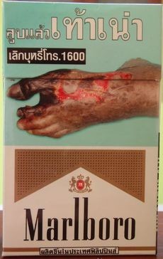 Всякую жесть в пол пачки сигарет давно печатают в Таиланде. Я собрал их коллекцию в блоге. Дублирую здесь.