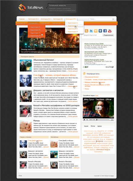Так-же, если будет нужда, бесплатно помогу изменить надпись TotalNews(в шапке) на необходимую вам.