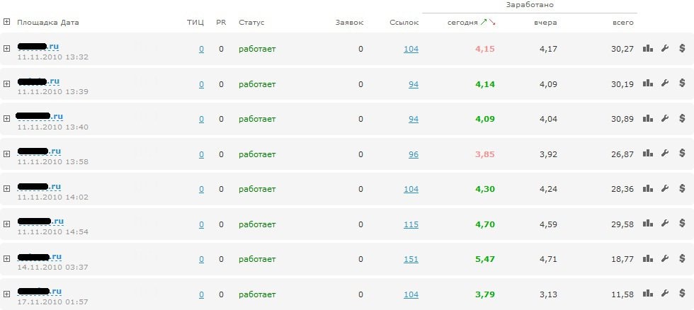 По подсчетам средний доход с каждого составит от 8 до 11 рублей в сутки, т.е. примерно 2300 рублей в месяц с 8-ми сайтов.