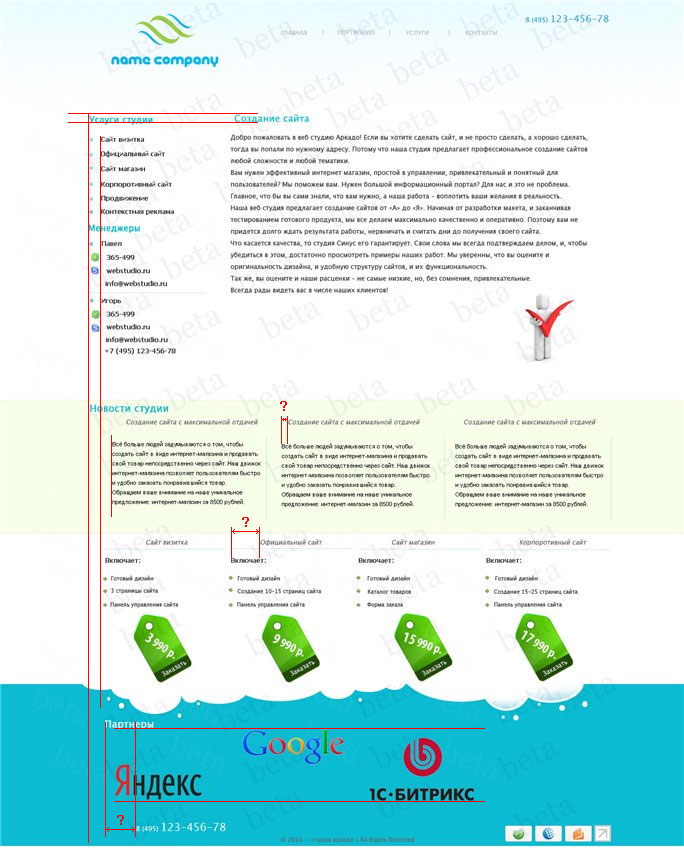 Мне кажется, что блок с новостями и тарифами нелогично размещать в самом-самом низу страницы.