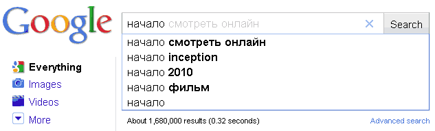 Например, сейчас по запросу «Начало» автозаполнение первым делом предлагает «Начало смотреть онлайн». По запросу “Iron Man” на четвёртом месте — “Iron Man 2 torrent”. То есть Google как бы подсказывает поискать пиратский контент, что раздражает правообладателей.