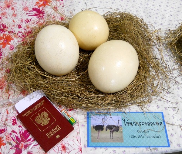 Страусиные яйца. Паспорт положил, чтоб был виден размер.