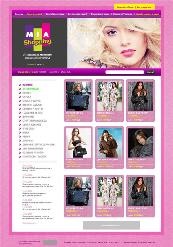 Предлагаю дизайн интернет магазина женской одежды "MIA SHOPPING"