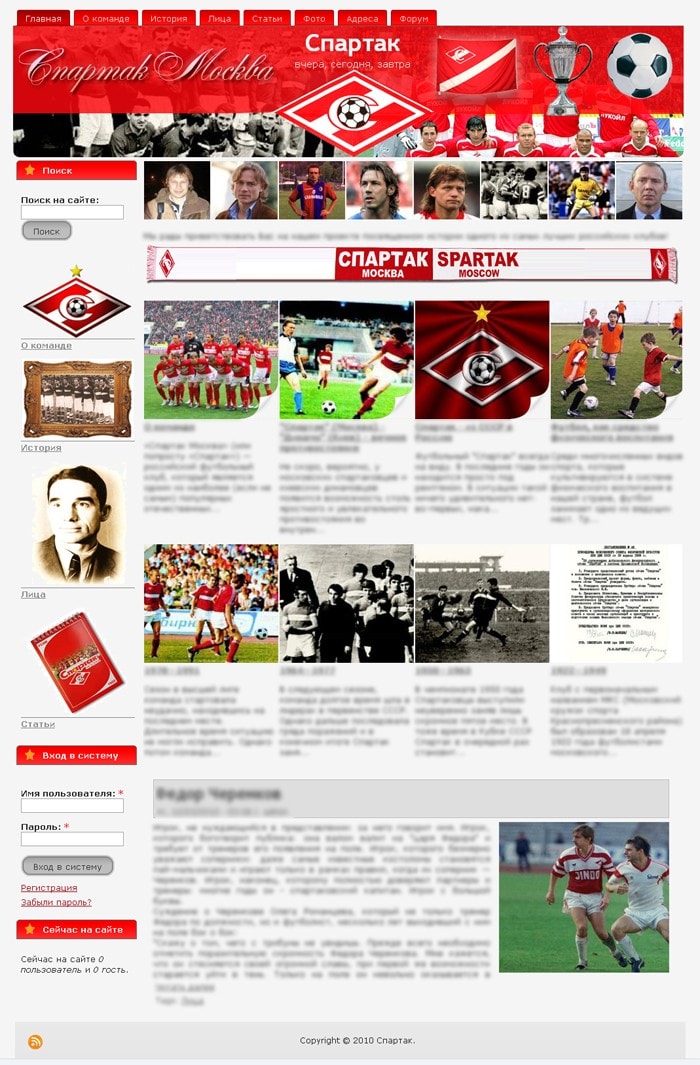 Выставляю на торги сайт "Спартак" без домена. Движок - Drupal 6.0. Сайт посвящен истории футбольного клуба Спартак Москва. Отличный подарок болельщику этого клуба.