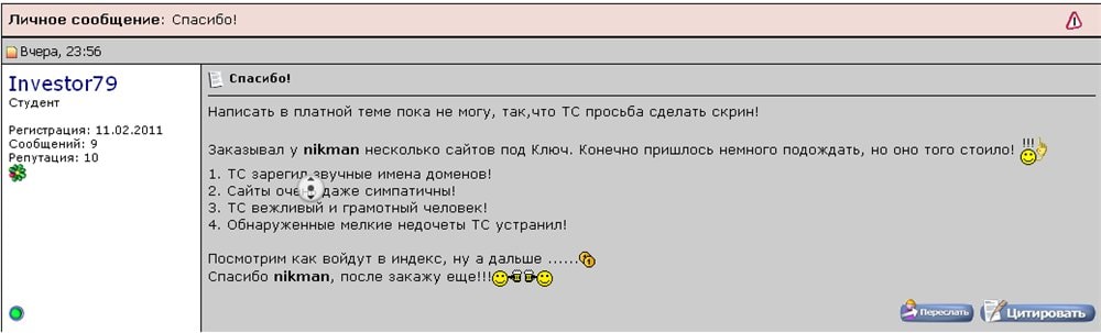 Заказывал 5 сайтов, сделаны быстро - в течении 2 дней,уже поставил и жду индексации)