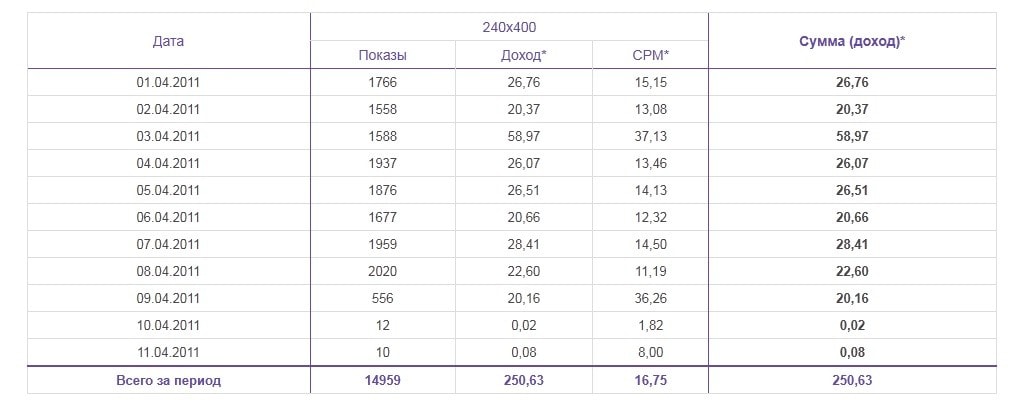 За 11-е отсутствует статистика по формату 240x400