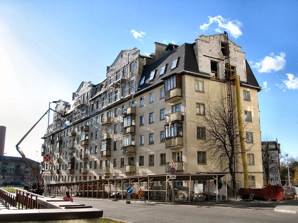 а лужковские - это приляпаные конструкции к кубикам как раз - башенки\арочки