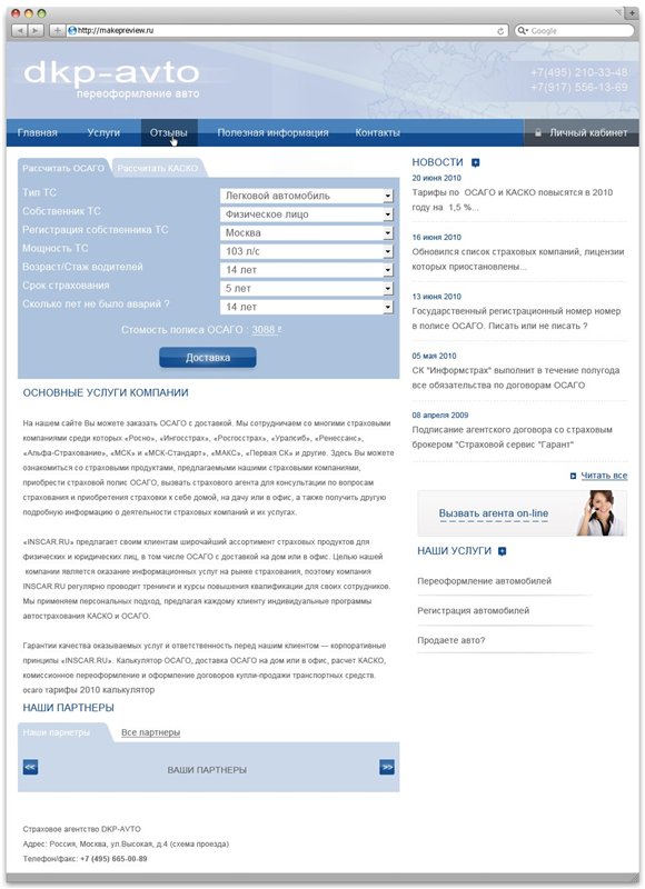 6) Должен быть блок "Партнеры", где будут указаны страховые компании партнеры.