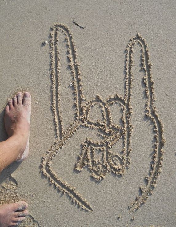 Надо руку на песок положить и обвести. Точнее получится. Или сделать рукой козу, сфотать, распечатать и потом с принта аккуратно перерисовать на песок.