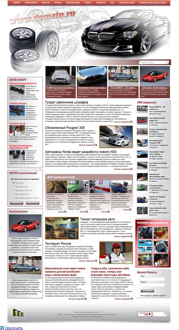 Шаблон : уникальный, предоставлю psd исходник. Все анонсы на главной динамические и выводят последние статьи из определенных рубрик.