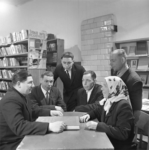 Вот типа такого - лектор в деревенской библиотеке советской?