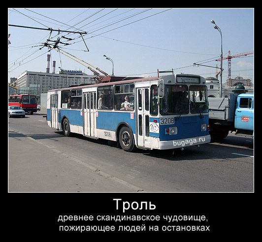 Троли бывают обычные и интернетные. Обычные троли - сказочные персонажи. А интернетные - это тектопостоянасрутвкомментахинеставятпробеловмлиа! )))