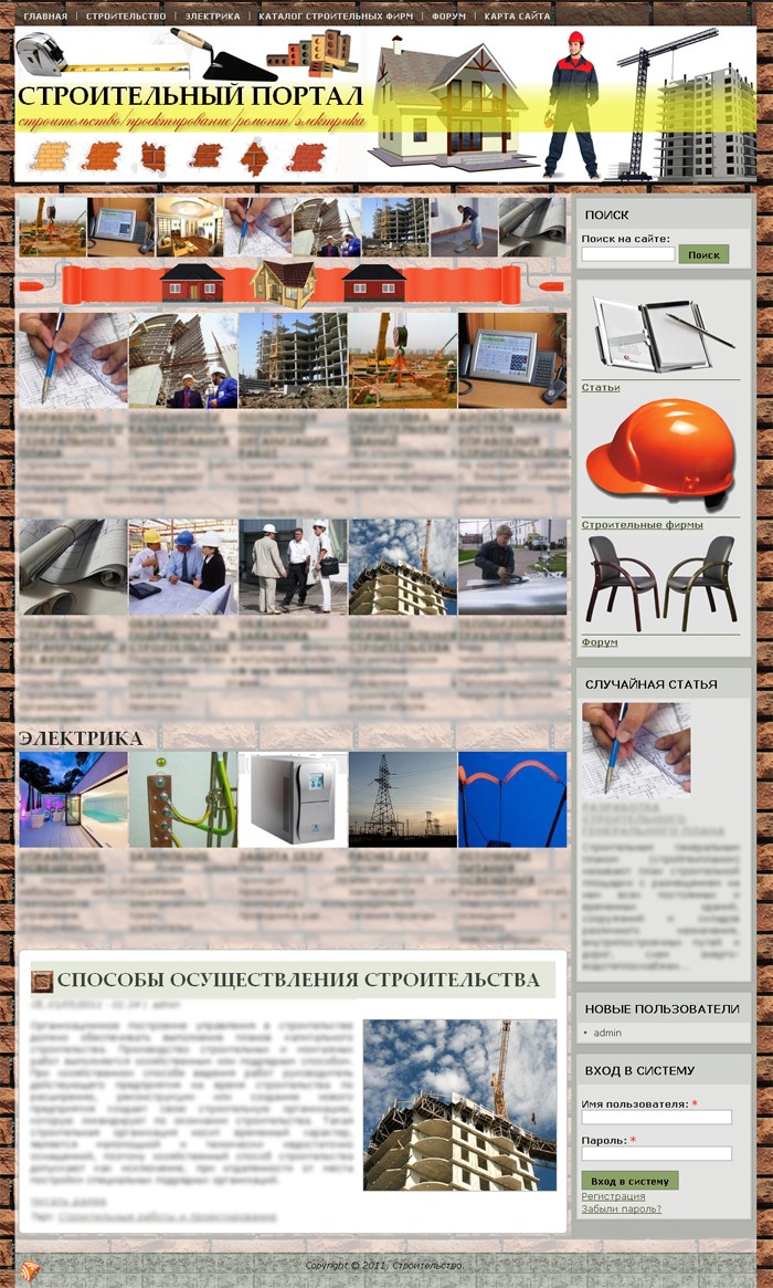 Выставляю на торги сайтик строительной тематики на Drupal без домена. Движок - Drupal 6.0. На сайте представлены статьи тематики строительство, проектирование, электрика.