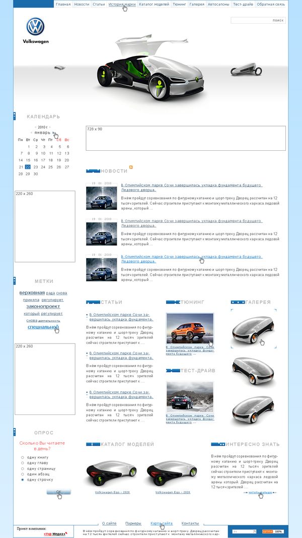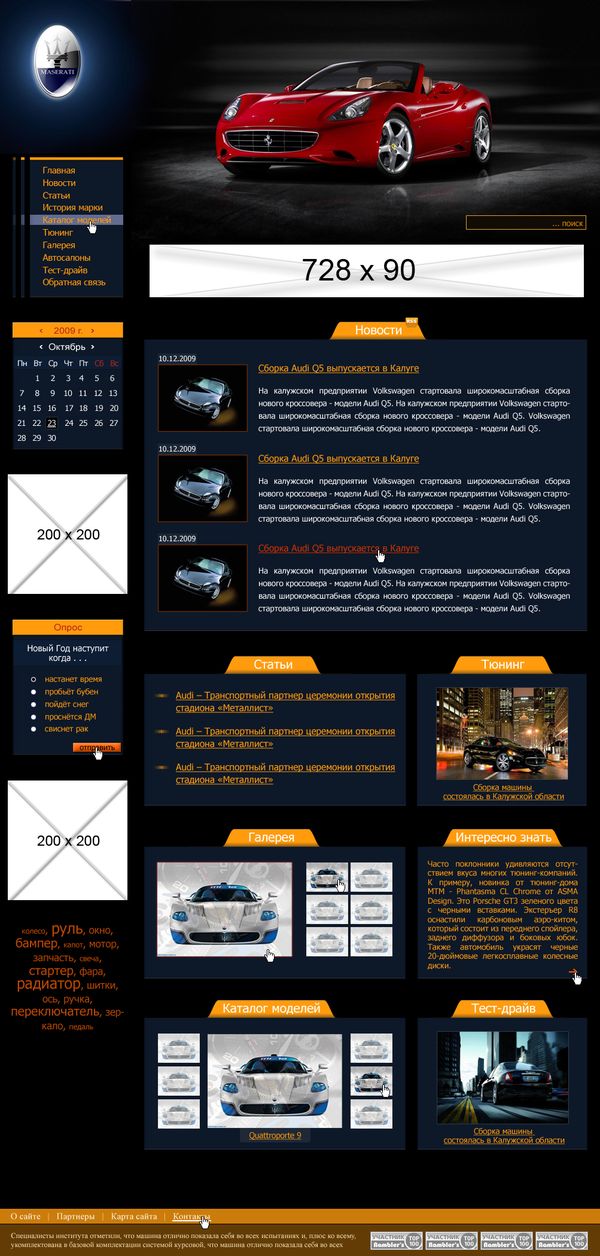 Скопилось более десятка макетов которые разрабатывались под автомобильные сайты портального типа. Каждый под конкретную марку.