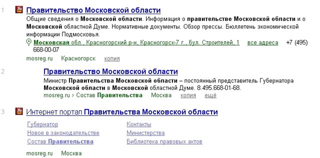 Запрос выдает сайт mosreg.ru на 1м и втором месте(при этом показывает разные регионы), вижу такое впервые