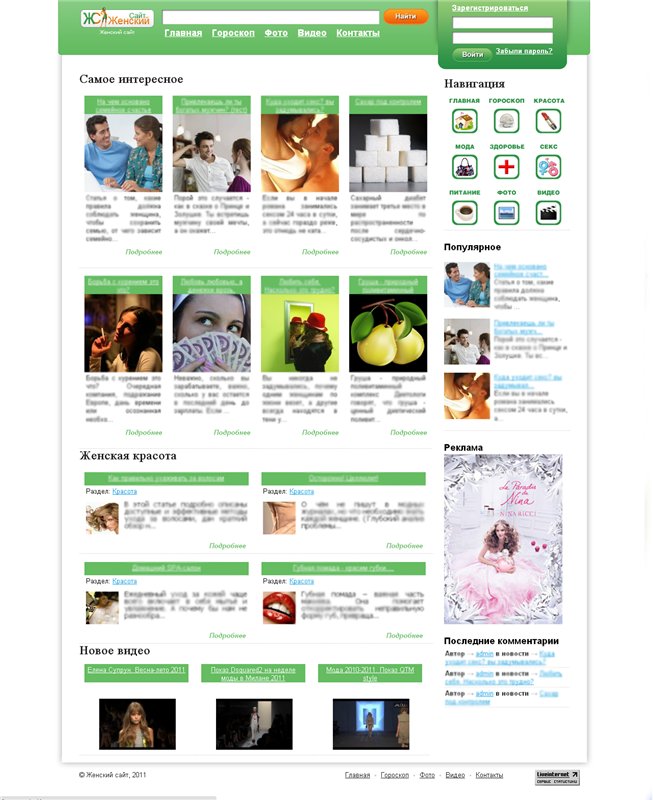 Доп. модули: гороской(автоматическое обновление), фото галерея, видео галерея, последние комментарии.
