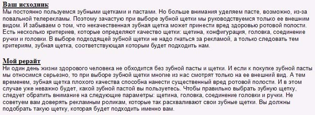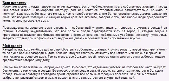 Рерайт – 0.7$ за 1000 знаков без пробелов. Работаю только с вашими исходниками, потому что упор делаю на быстроту, не забывая о качестве!