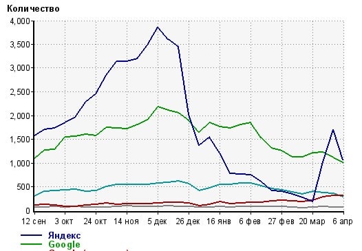 25 марта сайт вышел из под фильтра "ссылки на порно", под которым находился 3 месяца и трафик с яндекса восстановился, а уже 29 марта снова просел.