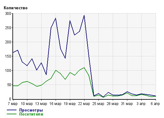 Как обычно в таких случаях, люди дают график, но не дают пароля к LI, чтобы можно было посмотреть адрес сайта, источники трафика, запросы и позиции. Мол, попробуйте обо всем об этом догадаться сами без пароля к статистике, а я это все сам посмотрю и над вами посмеюсь.