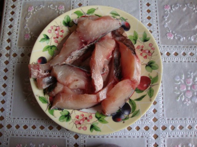 1. Рыба (у меня толстолобик, сойдет любая речная - карп, щука, сом, сазан). Рыбу нарезать такими вот кусками.