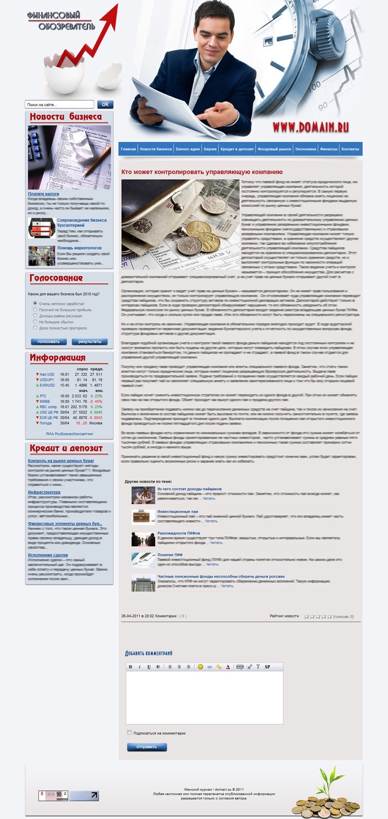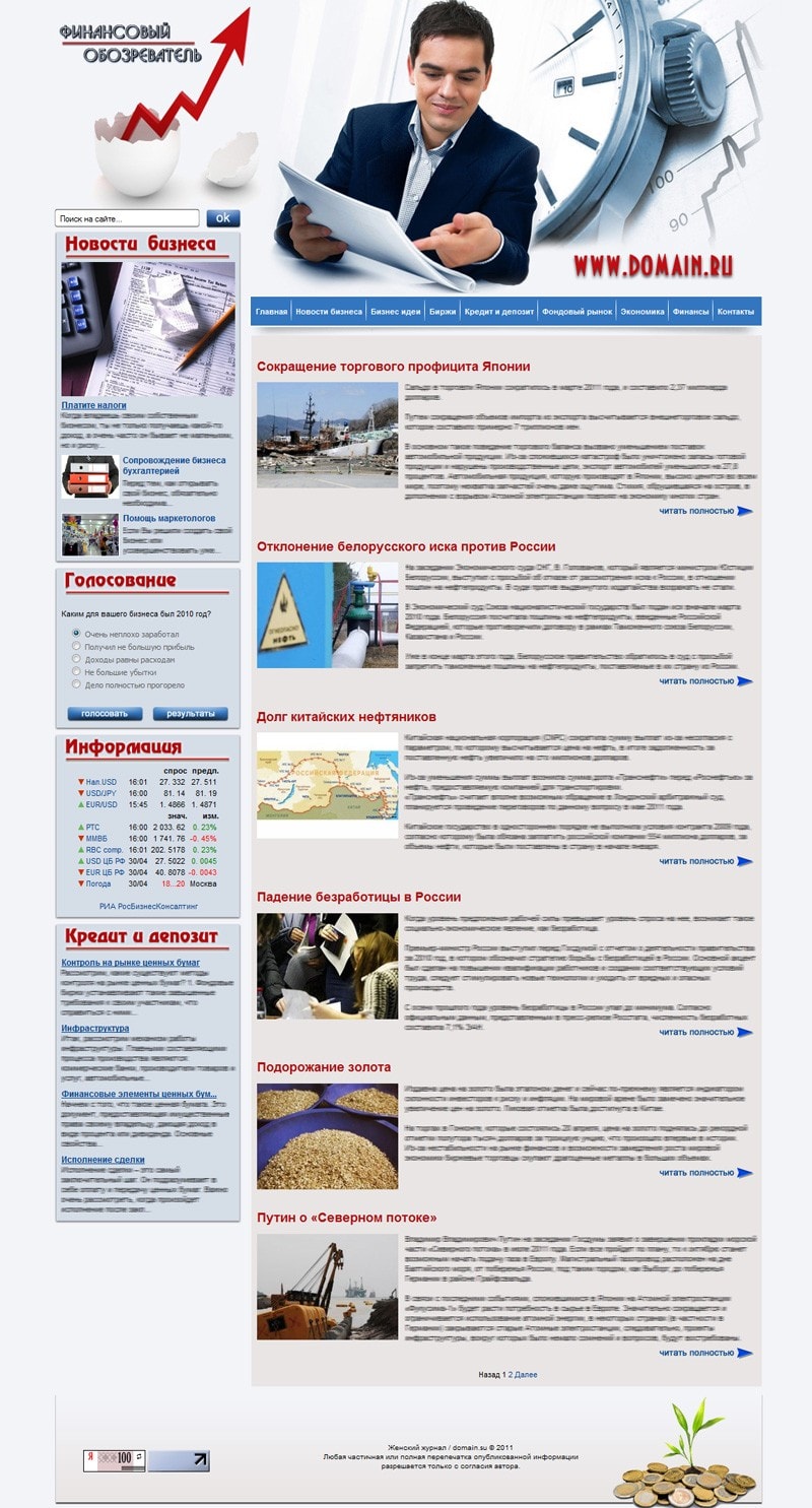 - Блок "Новости бизнеса" выводит автоматически последние анонсы статей из раздела новости бизнеса.