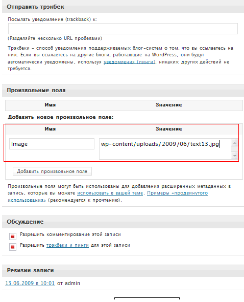 При редактировании записи, в правом верхнем углу есть кнопка "Настройки экрана". Нажмите на неё и выберете то, что требуется отображать на экране.