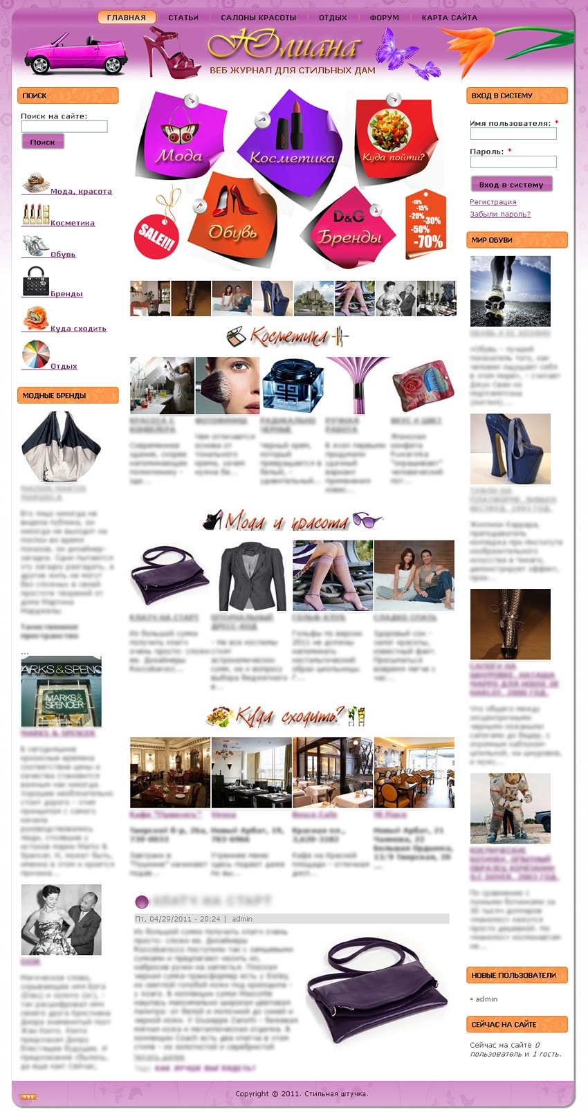Выставляю на торги симпатичный женский сайтик "Юлиана". Движок - Drupal 6.0.
