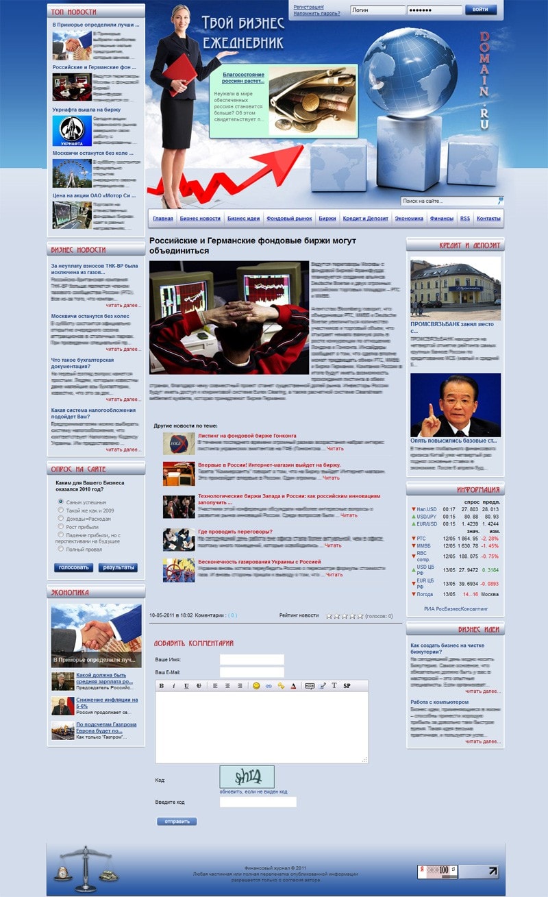 - Блок "Бизнес новости" выводит автоматически последние анонсы статей из раздела бизнес новости.