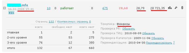 Пример аналогичного сайта финансовой тематики, прогонялся только по базе каталогов 1PS.ru, стабильный тиц 10, живет в индексе яши 3 года, доход в sape 28,50
